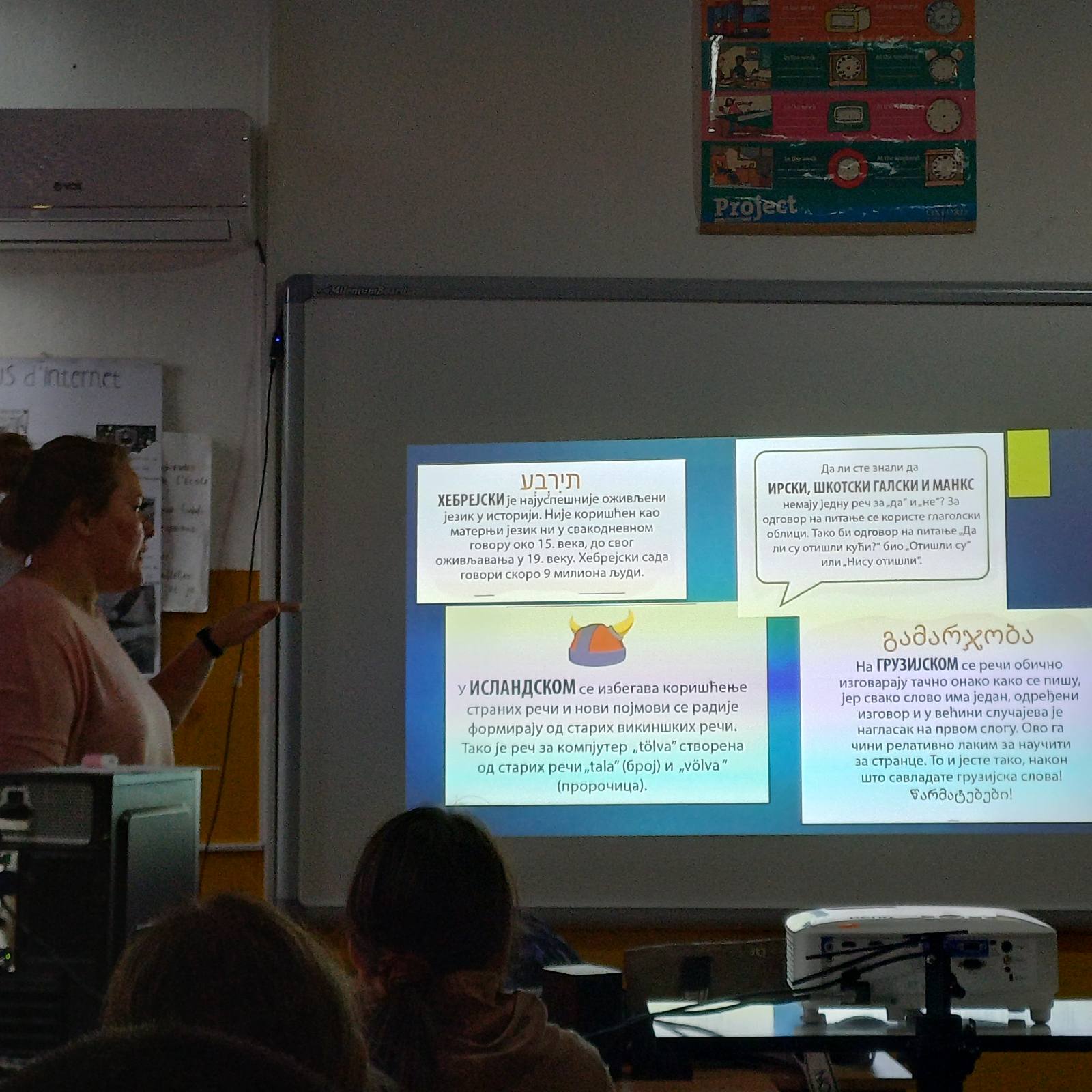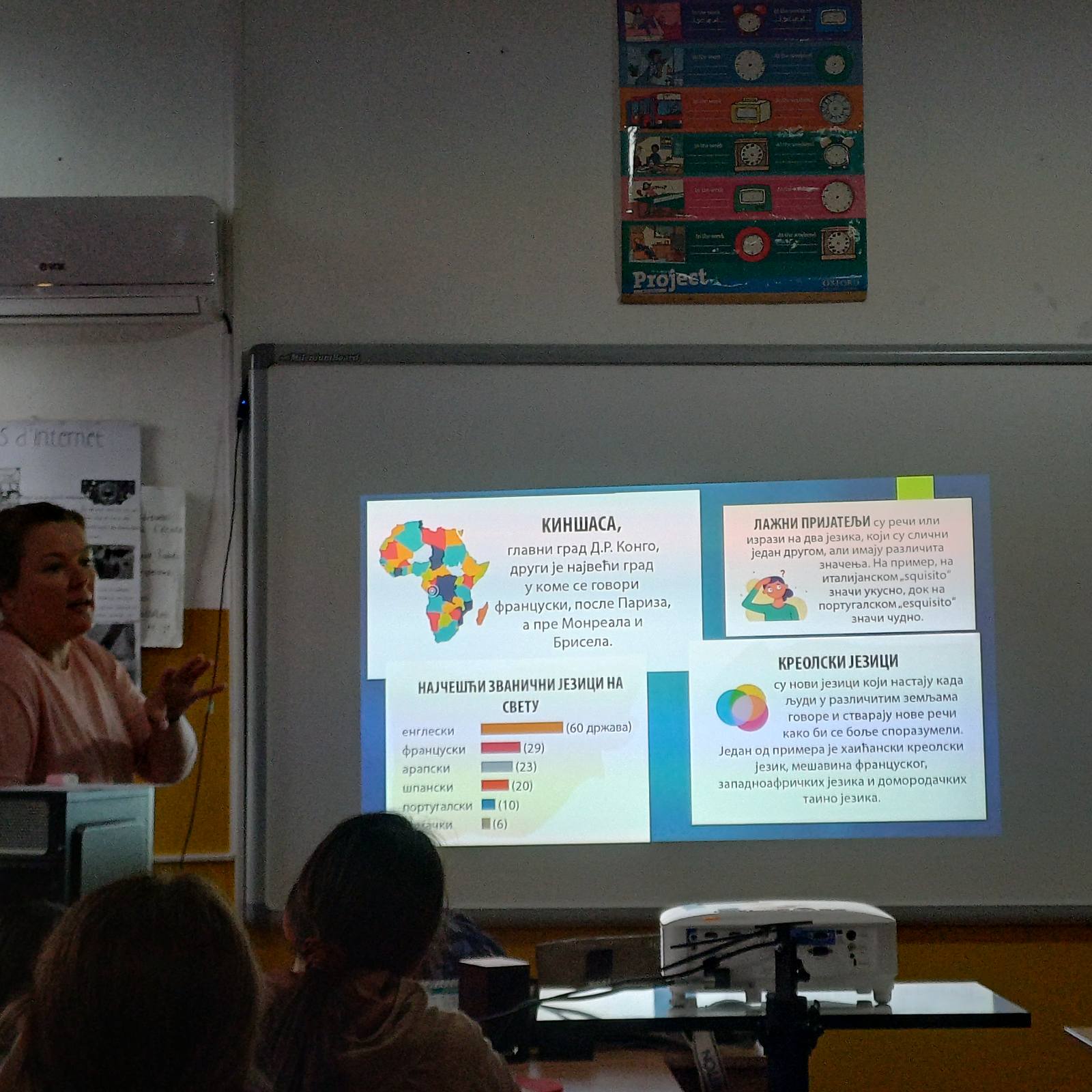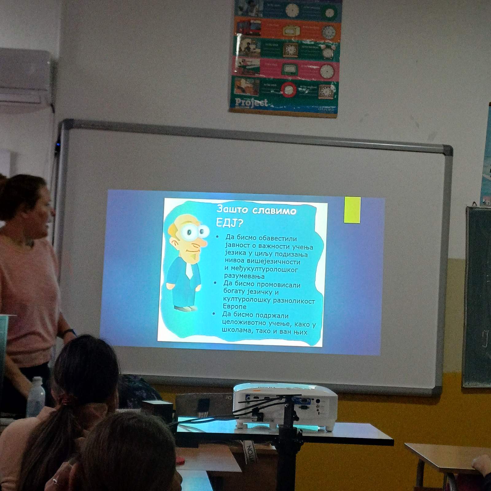 Европски дан језика обележен је у нашој школи. Наставница француског језика Тамара Јањић Милошевић припремила је презентацију за ученике и наставнике о језицима у свету и Европи. Часу су присуствовали ученици петог и шестог разреда као и наставници и педагог школе. Презентације је била врло интересантна са занимљивостима које су окупирале пажњу свих присутних на часу. Подсетили смо се зашто је важно обележавање Европског дана језика, а то је подизање на вишем нивоу вишејезичност и међукултуролошког разумевања. Такође је битно да се промовише богата језичка и културолошка разноликост Европе и подржи концепт целоживотног учења.