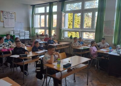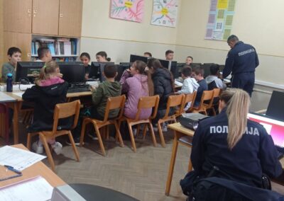 У оквиру реализације пројекта ,,Заједно и безбедно кроз детињсво“, припадници ПУ Бор одржали су предавање ученицима петог и осмог разреда наше школе под називом ,,О вршњачком насиљу и превенцији“. Ово предавање је обухватило различите аспекте вршњачког насиља, од дефиниције и врсте до тога како препознати и реаговати на насиље. Такође је речено и то како се вршњачко насиље манифестује у стварном и виртуелном окружењу, и какве су последице. На крају су ученици сазнали како се и коме могу обратити за помоћ и своје знање проверили кроз квиз који је реализован на крају предавања.