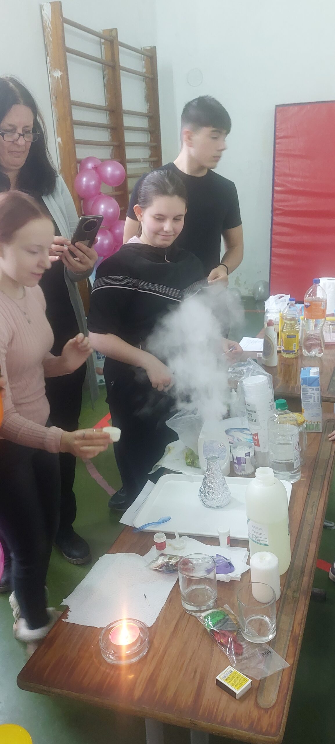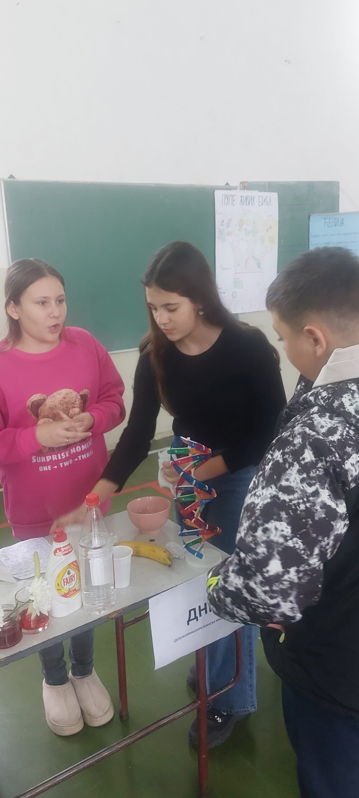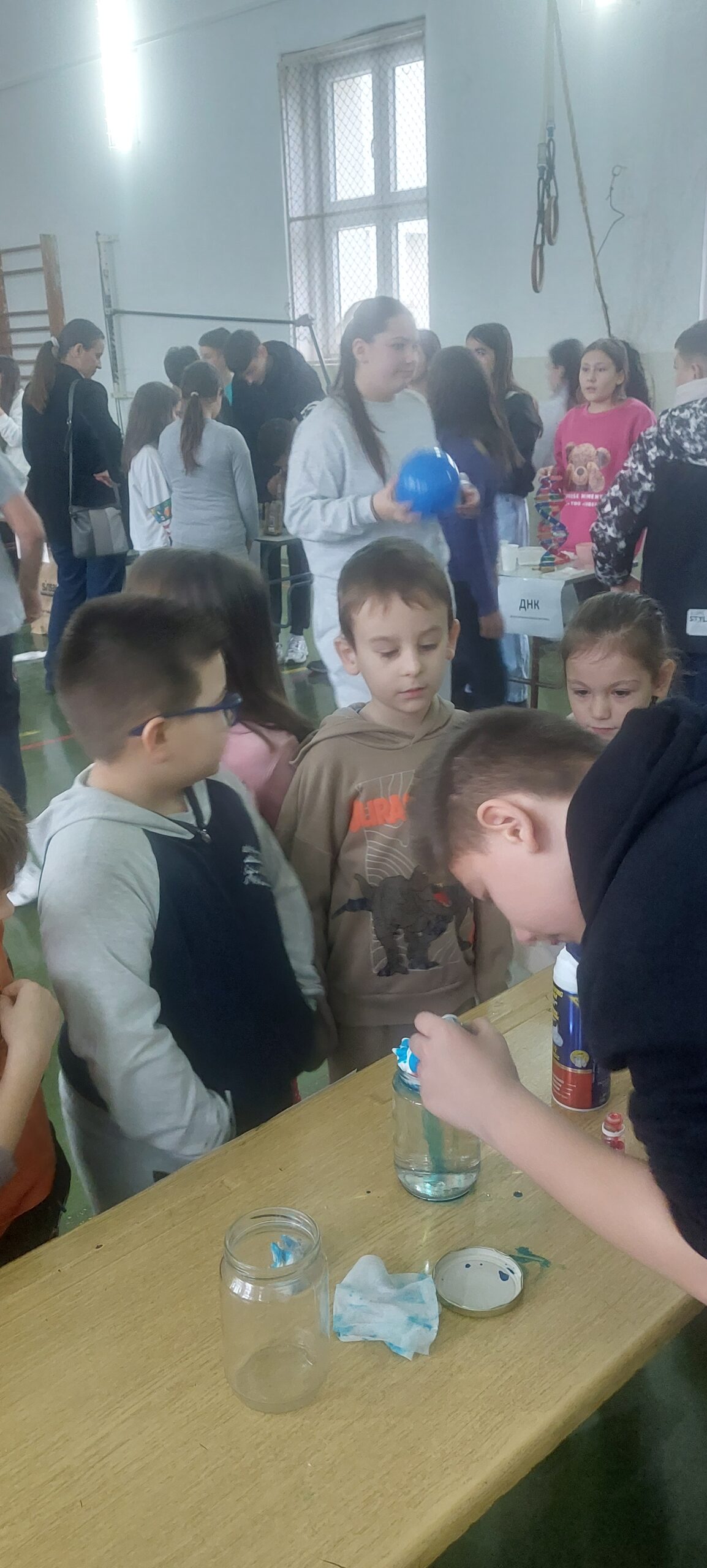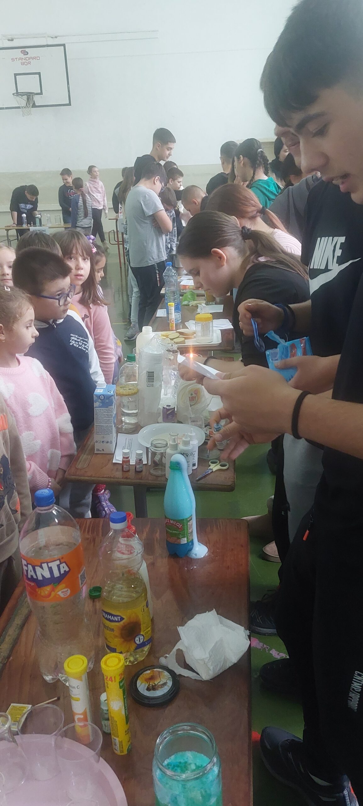 И наша школа је ове, као и претходне, године узела учешће у обележавању овог значајног датума кроз разне активности ученика и наставника биологије, хемије, физике, географије и математике. Током два школска часа, ученици старијих разреда упознали су своје другаре и ученике млађих разреда како изгледа ДНК, како изгледа ћелија, разним огледима из хемије, биологије и физике, како да пишу тајне поруке невидљивим мастилом, како настаје земљотрес и како изгледа вулкан. Ученици са са одушевљењем и неверицом гледали балон који се сам надувава, ерупцију вулкана, кафу која мења боју, шарену кишу, џиновску пасту за зубе, кичму направљену од рециклираног материјала, како направити лава лампу…Активно су постављали питања и учествовали у експериментима, чиме је подстакнута њихова радозналост и интересовање за природне науке. Овај интердисциплинарни пројекат је одличан пример промоције науке и инспирисања младих да се баве истраживањем.