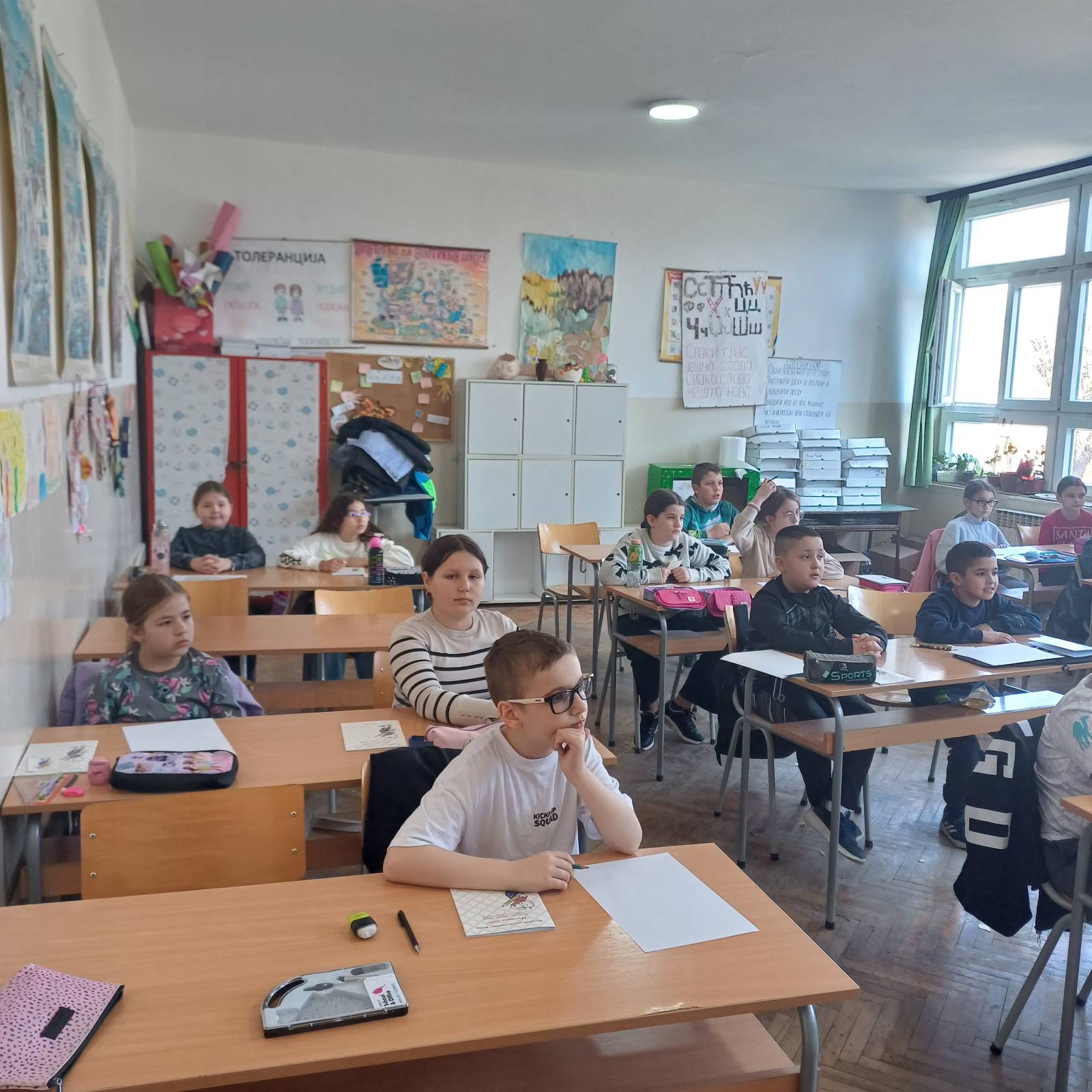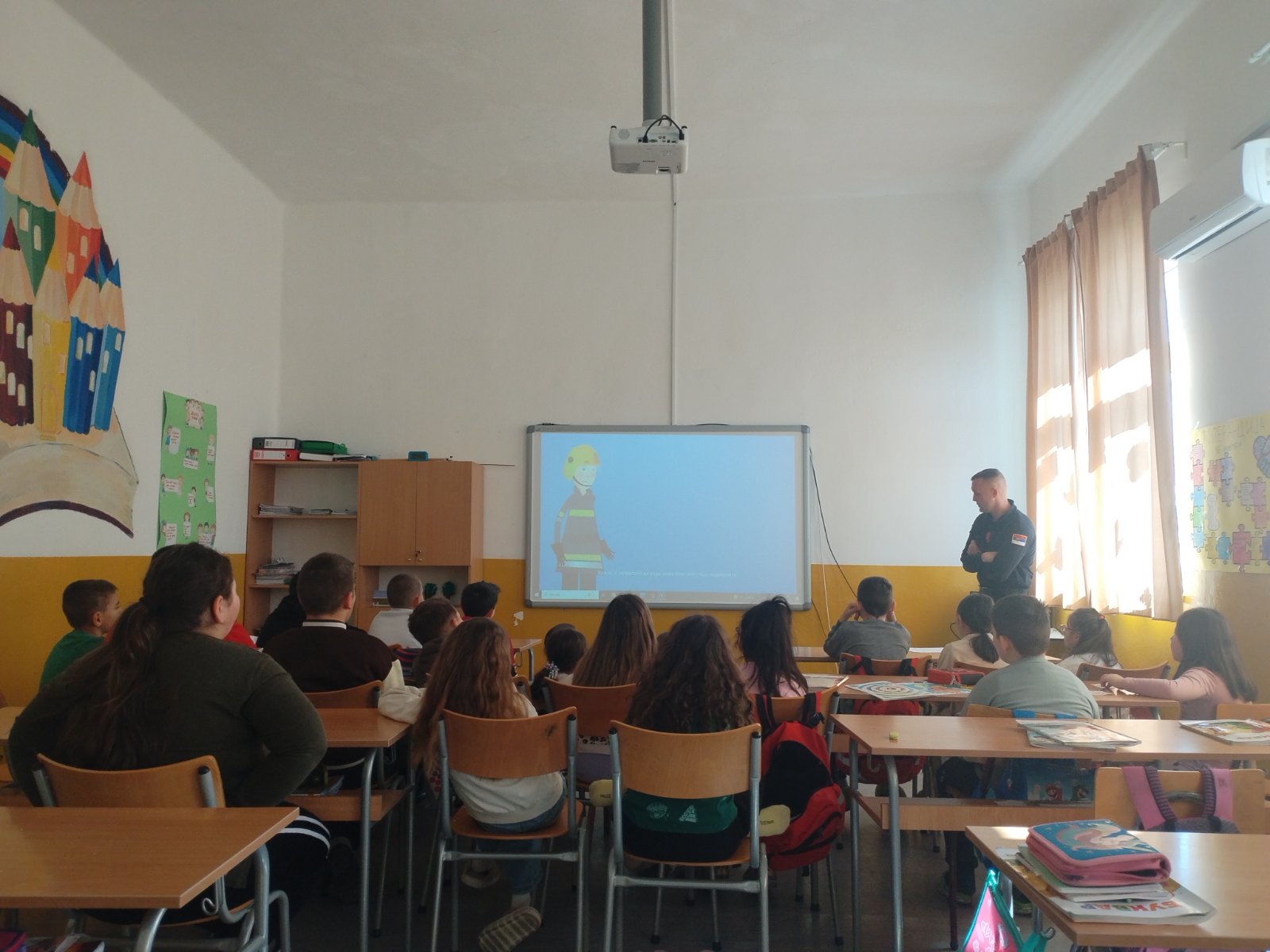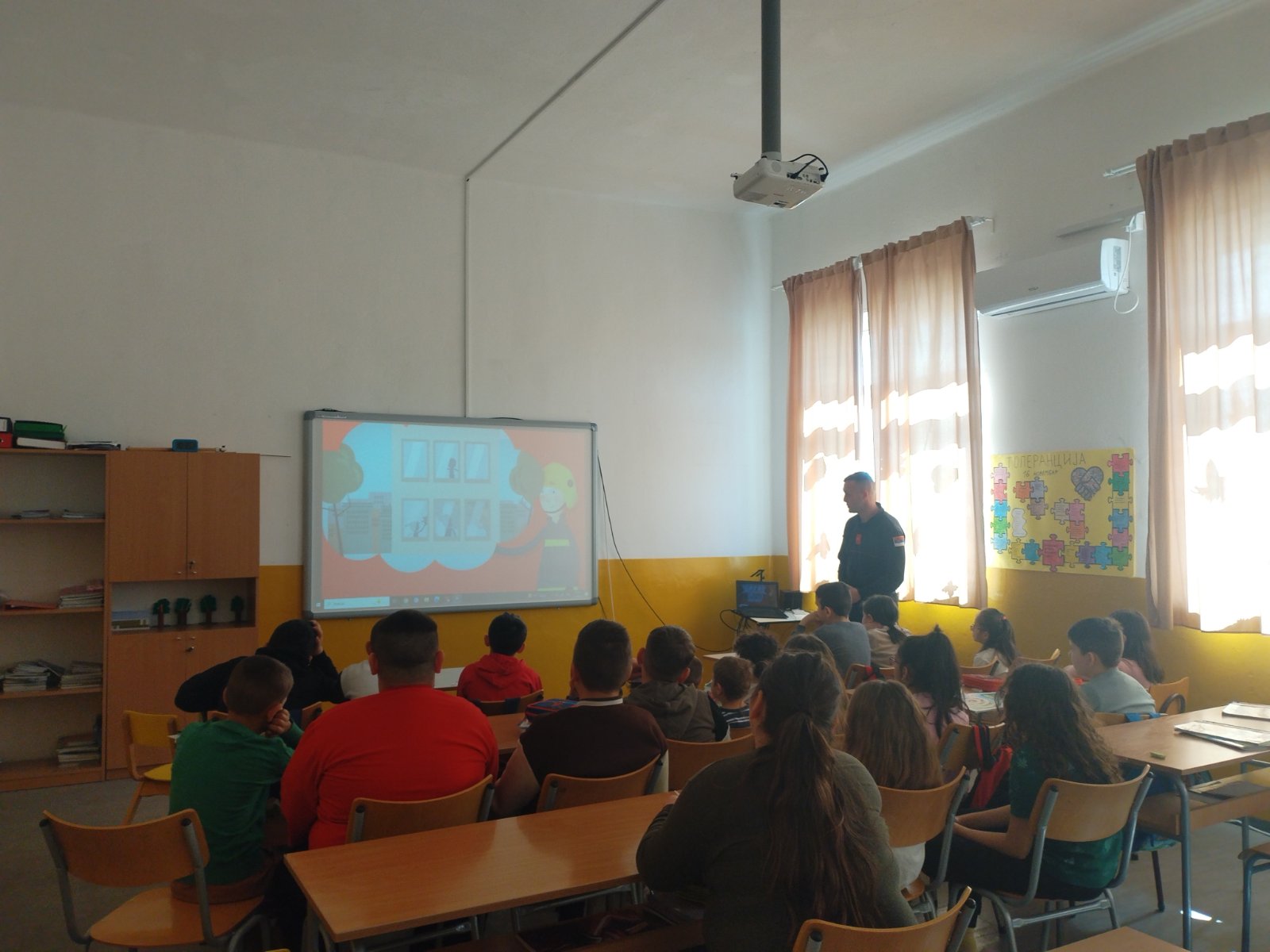 Предавање и презентација за прваке у оквиру пројекта “Заједно и безбедно кроз детињство” одржано је у матичној и рејонској школи Кобила у среду, 4. марта 2026. године. Тема је била: “Безбедност деце у саобраћају”, а ученици првог разреда упознали су се са занимањем саобраћајац као и са правилима понашања у саобраћају.